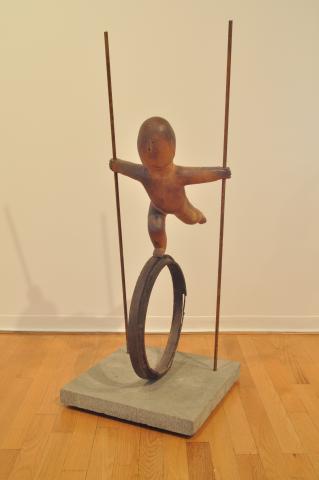 grès cuit au bois, acier,ciment